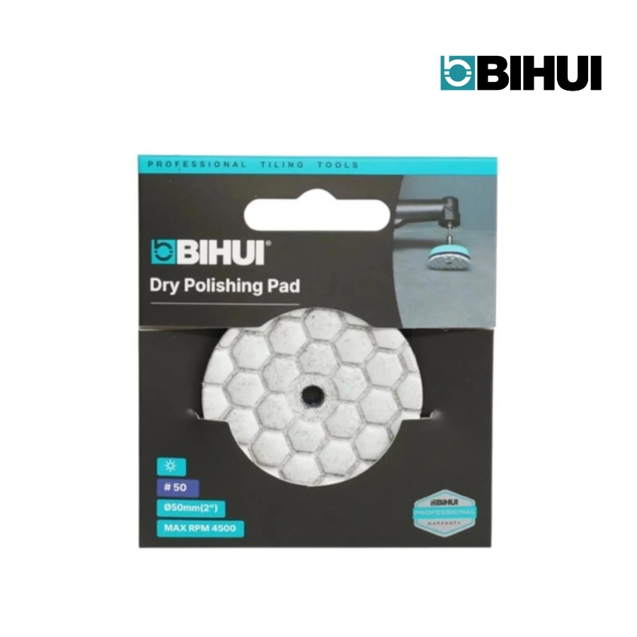 Mini Pad polerski diamentowy na sucho do płytek 50mm gr. 50 BIHUI AGMPD1- zaprojektowany do pracy na sucho, skutecznie usuwa drobne nierówności i przygotowuje materiał do dalszych etapów polerowania. Kompaktowy rozmiar pozwala na wygodną pracę w trudno dostępnych miejscach oraz przy obróbce detali.