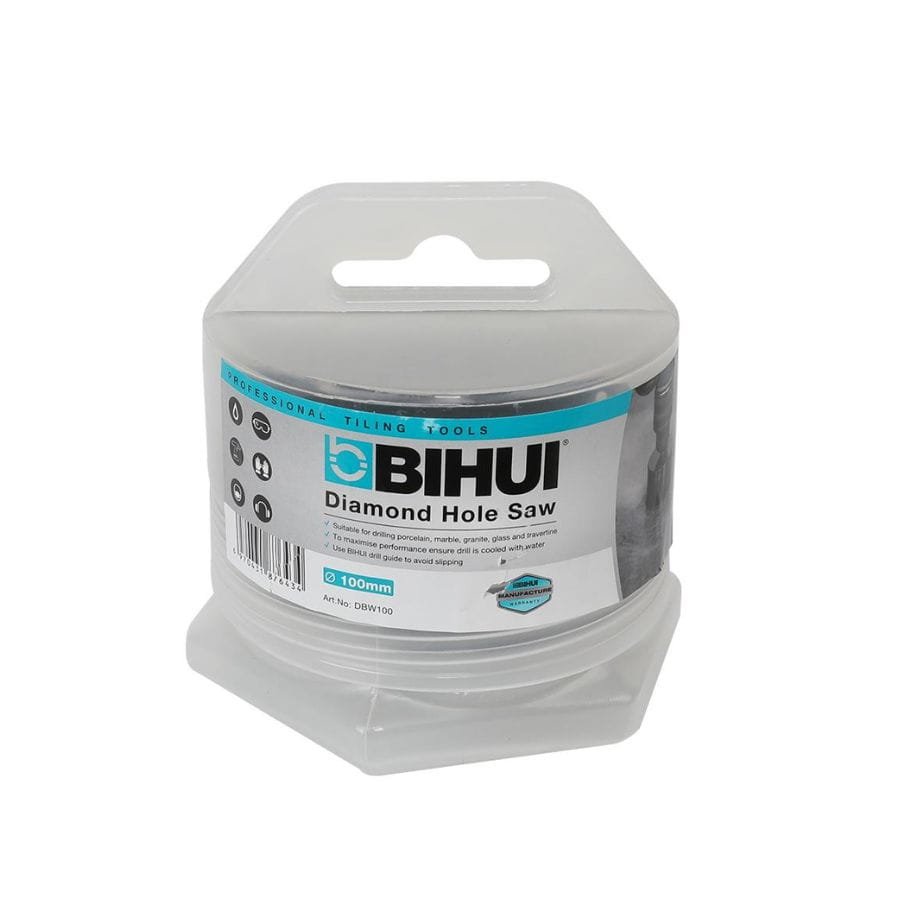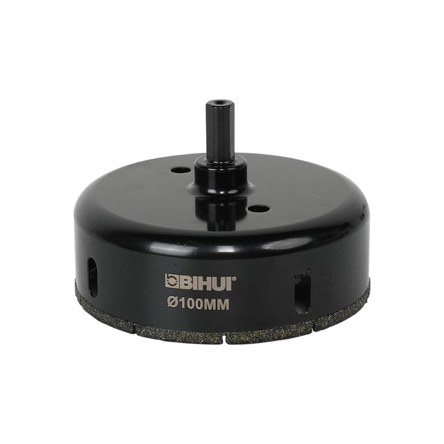 Koronka otwornica diamentowa do wiercenia na mokro 100mm Bihui DBW100- wysokiej jakości segment diamentowy oraz konstrukcja chłodzona wodą sprawiają, że narzędzie doskonale sprawdza się w pracy z gresami, porcelaną, ceramiką, granitem i marmurem.