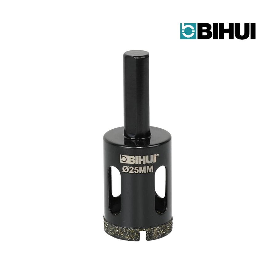 Koronka otwornica diamentowa do wiercenia na mokro 25mm Bihui DBW25- wysokiej jakości segment diamentowy oraz konstrukcja chłodzona wodą sprawiają, że narzędzie doskonale sprawdza się w pracy z gresami, porcelaną, ceramiką, granitem i marmurem.