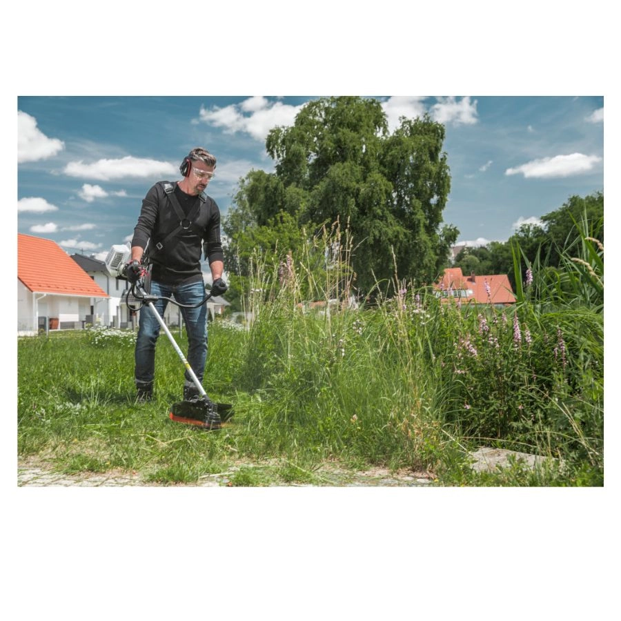 Dzięki możliwości zastosowania głowicy żyłkowej oraz metalowej tarczy tnącej, urządzenie radzi sobie zarówno z miękką trawą, jak i bardziej wymagającą roślinnością.