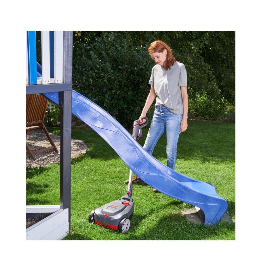 Kosiarka mulczująca akumulatorowa 8V 1x2,5Ah ALKO 114032 - kosiarka wyposażona jest w wydajny akumulator 8V 2,5Ah, który zapewnia długi czas pracy bez konieczności podłączania do sieci elektrycznej.