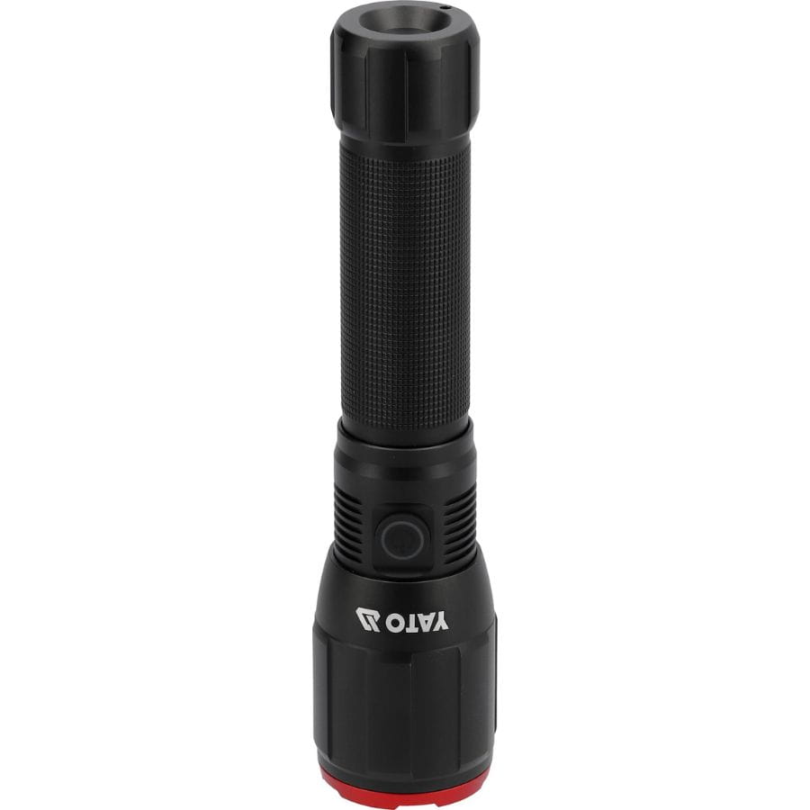 Latarka akumulatorowa Yato YT-085606 25W 2500 lm, 4 tryby świecenia, regulowany zoom, zasięg do 180 m, podwójne zasilanie Li-Ion i AA, wytrzymała aluminiowa obudowa IPX4/IK07.