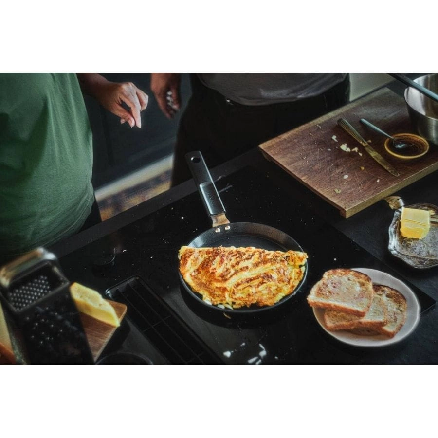 - Idealna do robienia omletów i naleśników, a także do smażenia lub podsmażania mniejszych porcji, w tym jaj, warzyw, mięsa, drobiu czy delikatnych składników, takich jak ryba czy tofu.