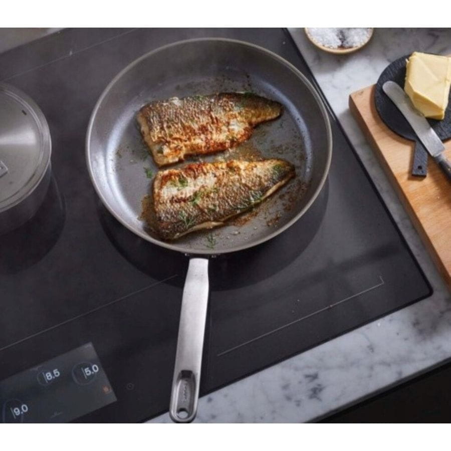 Patelnia z pokrywką 26 cm Fiskars All Steel 1064746 to profesjonalne naczynie stworzone z myślą o intensywnym, codziennym gotowaniu. Model ten łączy wyjątkową trwałość stali nierdzewnej z nowoczesną, nieprzywierającą powłoką Ceratec oraz odpowiedzialnym podejściem do środowiska.