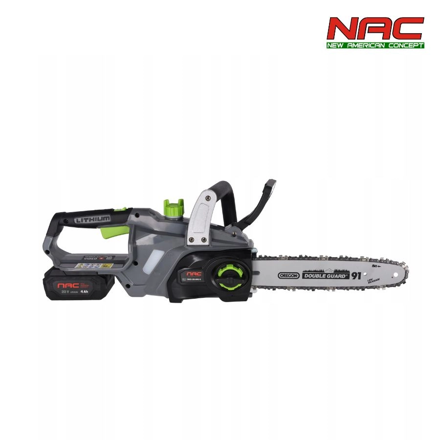 Piła akumulatorowa NAC 20V 4Ah 30 cm. Wydajna, lekka i mobilna pilarka do drewna i ogrodu. System SDS i automatyczne smarowanie.
