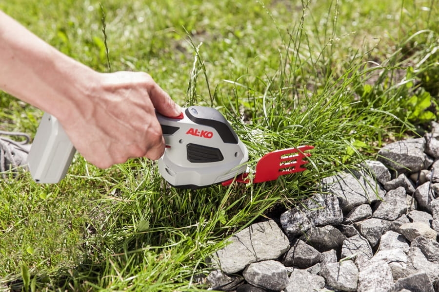 nożyce posiadają wbudowany zintegrowany akumulator i dzięki wymiennym końcówkom możesz używać tych nożyc do krzewów jak i do trawy