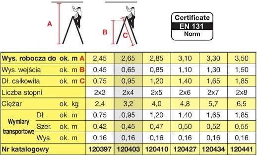 - posiada certyfikat bezpieczeństwa EN 131