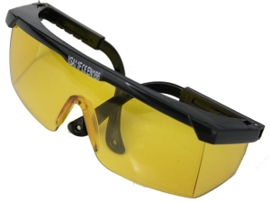 szybka wykonana z poliwęglanu w kolorze żółtym, oprawka z tworzyw sztucznych