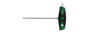 Rękojeść T ComfortGrip do klucza trzpieniowego firmy Wiha z trzonem bocznym jest narzędziem stosowanym w sytuacjach wymagających przyłożenia znacznych momentów dokręcania w sposób komfortowy. Dzięki ergonomicznemu kształtowi oraz zintegrowanym miękkim strefom rękojeść T przyjemnie leży w dłoni. Mniejsze powierzchnie uciskające dłoń oraz powodujące naprężenie mięśni sprawiają, że praca za pomocą tego narzędzia staje się przyjemnością.
