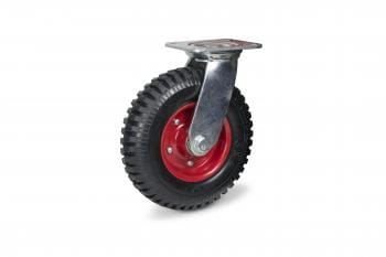 gumowa opona, bieżnikowana, stalowa piasta z tłoczonej blachy, podwójne łożysko