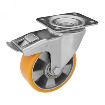 Koło: Nalewany poliuretanowy bieżnik, niebrudzący, aluminiowa piasta, podwójne łożysko kulkowe.