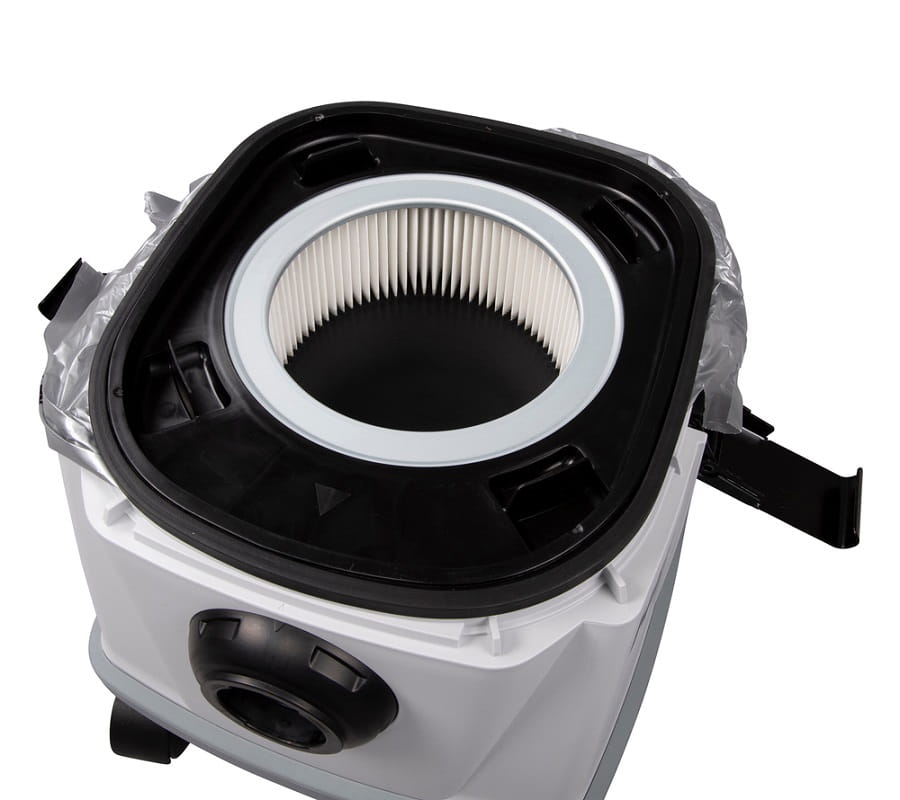 lekki i poręczny odkurzacz przemysłowy, łatwy do transportu i przechowywania zasilany dwoma akumulatorami 18 V