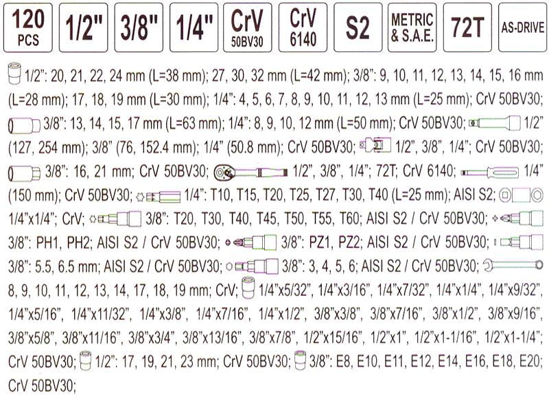 NASADKI KPL.120SZT 1/4" 3/8" 1/2" YATO YT-38801