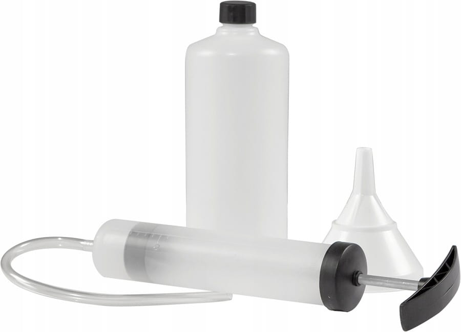 ten zestaw na pewno przyda się każdemu użytkownikowi kosiarek i traktorów. Umożliwia on szybkie odessanie oleju z silnika