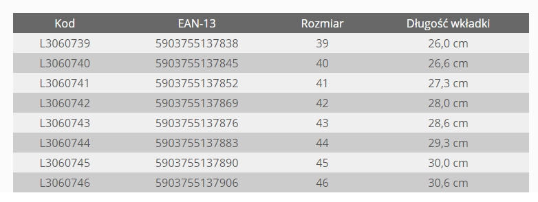 Wyściółka: wymienna (wkładki z podkładką łagodzącą nacisk stopy na podłoże).