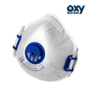 Półmaska filtrująca X110V FFP1 RD Oxyline, ochrona dróg oddechowych przed pyłem, dymem i mgłami wodnymi, zawór wydechowy, regulowane taśmy nagłowia, zgodna z PN-EN 149:2001+A1.
