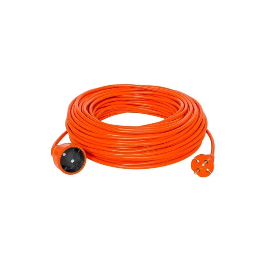 Pomarańczowy przedłużacz ogrodowy KEL z 1 gniazdem French, 40 m przewodem, moc 2300 W, IP20, do użytku wewnętrznego i zewnętrznego. Posiada przesłony torów i izolację polwinitową.