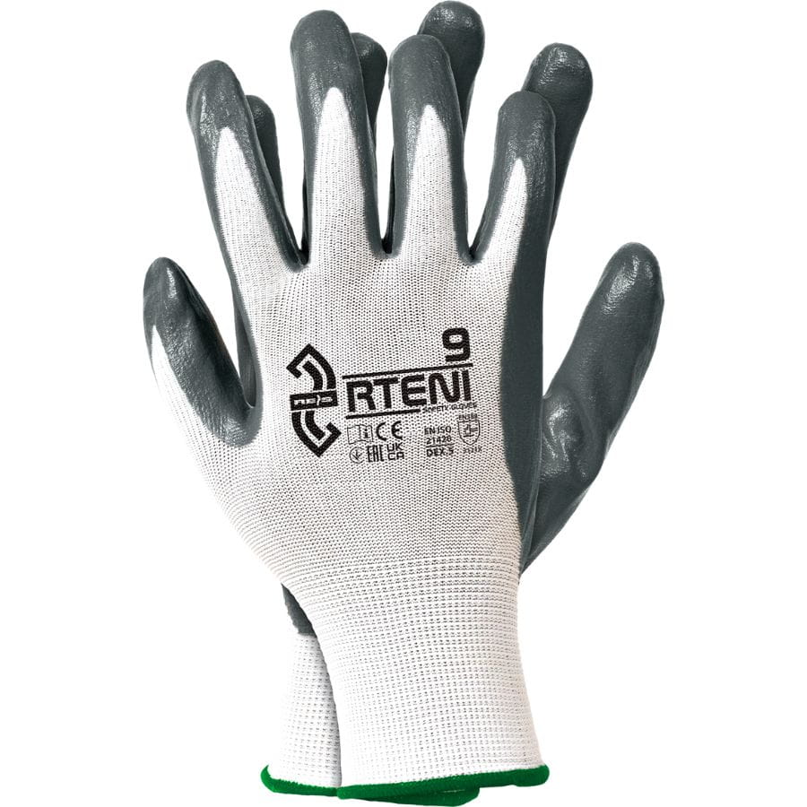 Rękawice robocze Rteni Nitryl rozmiar 10 to uniwersalne rękawice ochronne przeznaczone do prac mechanicznych i montażowych. Model wykonany z elastycznej dzianiny poliestrowej powlekanej gładkim nitrylem zapewnia doskonałe dopasowanie, chwytność i ochronę dłoni podczas pracy.