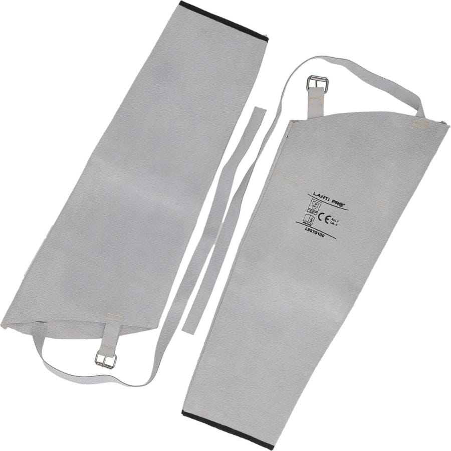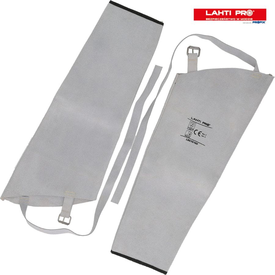 Rękawy spawalnicze Lahti L9070100 skórzane, długość 55 cm. Regulowane paski, przeszycia niepalną nicią, ochrona przed iskrami, żużlem i wysoką temperaturą.