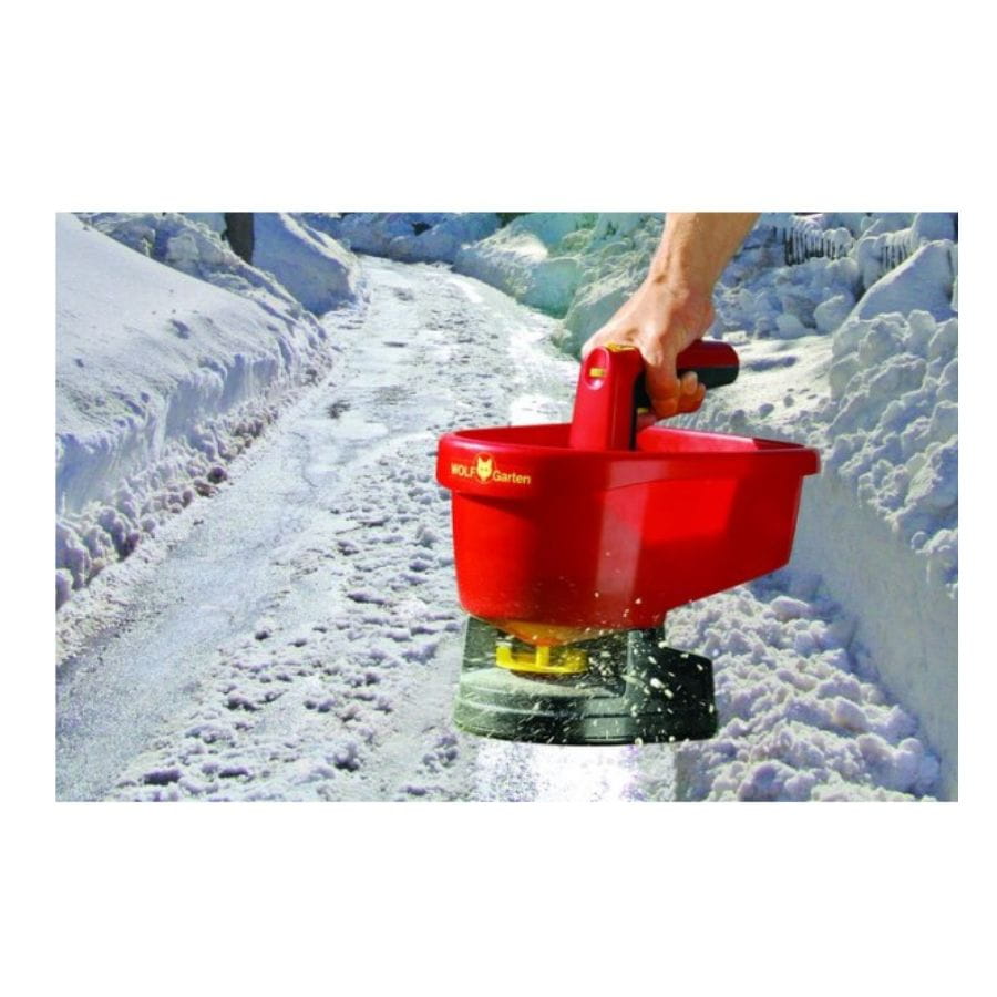 Zastosowanie produktu WOLF-GARTEN UR-M 3: doskonale sprawdzi się zarówno przy rozsiewaniu nasion trawy, nawozów granulowanych, jak i soli zimowej, co czyni go wszechstronnym narzędziem do pielęgnacji ogrodu przez cały rok.