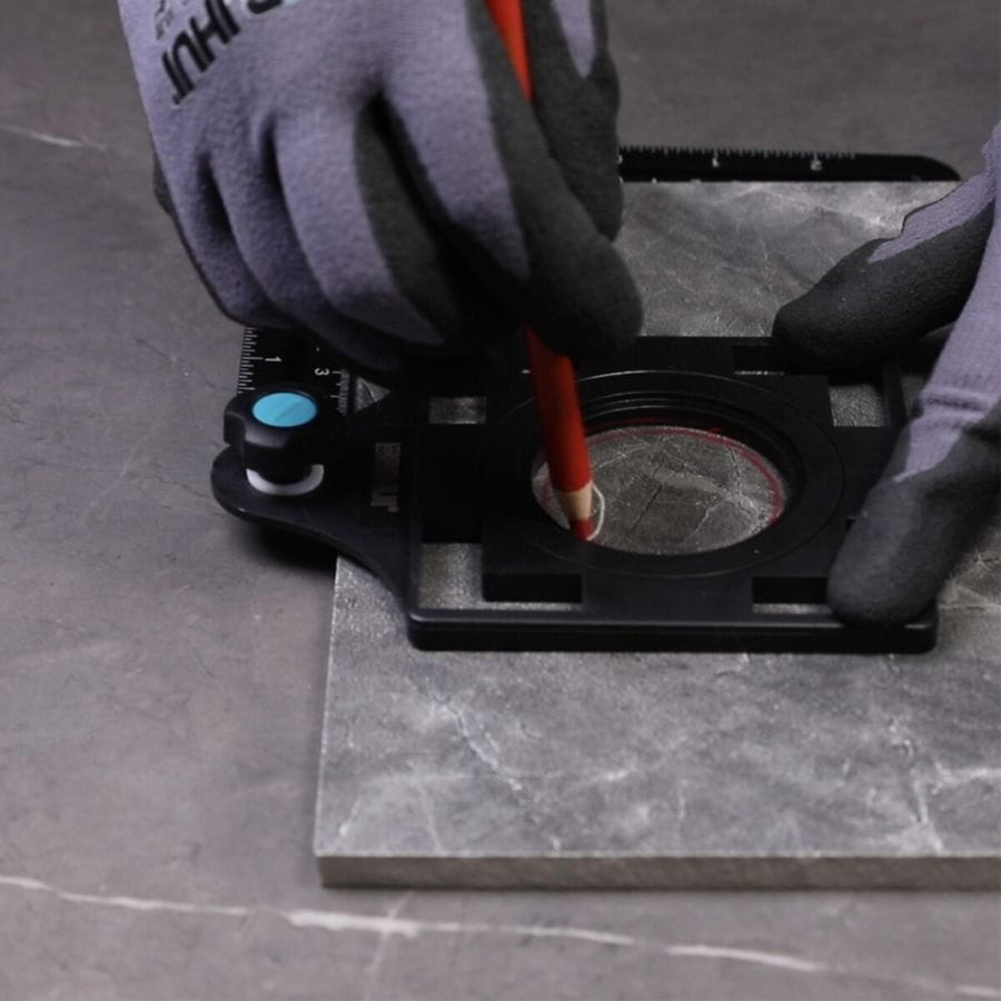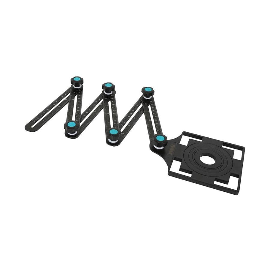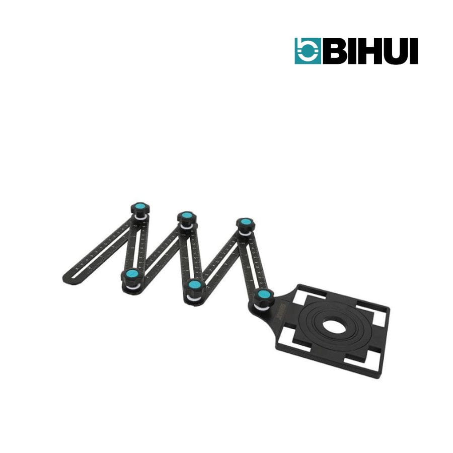 Szablon kształtów i otworów glazurniczych z prowadnicami Bihui DBG6 - dzięki regulowanym prowadnicom i miarce kątowej, możliwe jest szybkie i dokładne wyznaczanie miejsc pod gniazdka, rury, narożniki czy nieregularne kształty. Idealny do pracy z płytkami wielkoformatowymi i przy skomplikowanych projektach wykończeniowych.