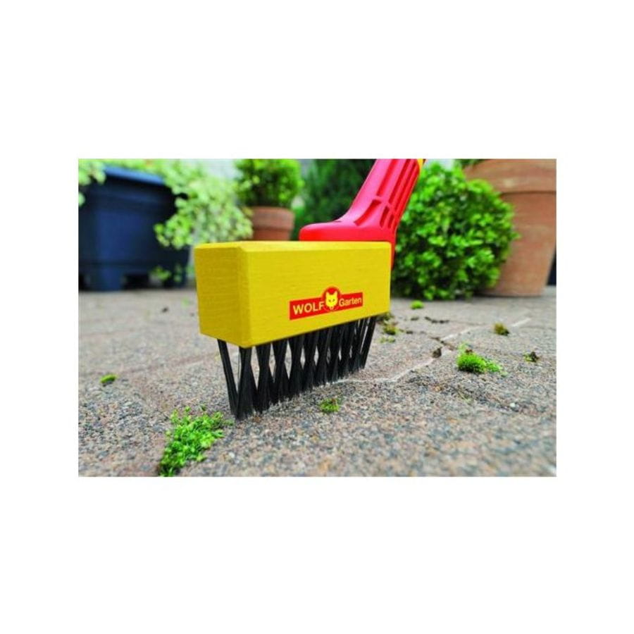 Szczotka do szczelin FB-M WOLF-Garten to skuteczne narzędzie do usuwania mchu i trawy z trudnodostępnych miejsc, kompatybilne z systemem multi-star® i zapewniające wygodną pracę na dużych powierzchniach.
