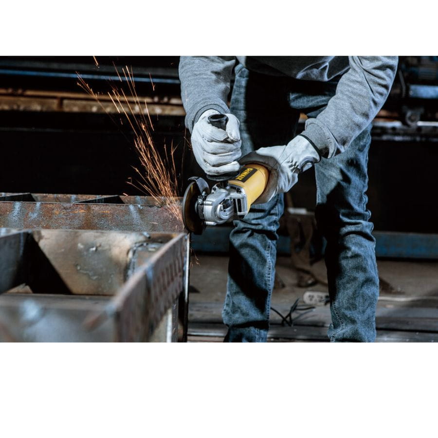 Szlifierka kątowa Dewalt DWE4117 - kompaktowa i ergonomiczna konstrukcja ułatwia manewrowanie oraz zapewnia wygodę użytkowania. System odprowadzania pyłu chroni silnik przed zanieczyszczeniami, wydłużając jego żywotność.