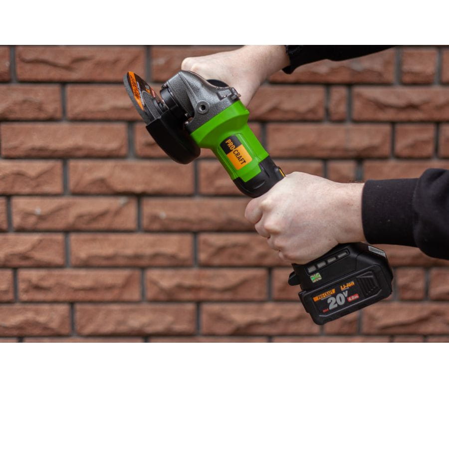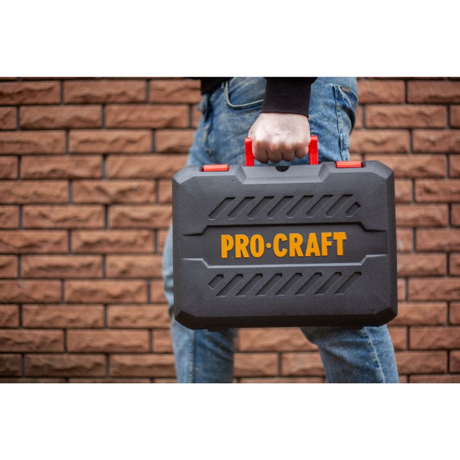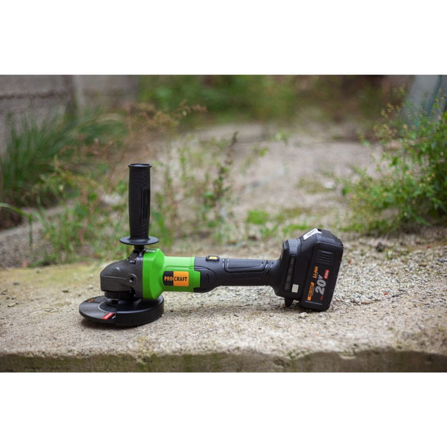 Procraft PGA20 – akumulatorowa szlifierka kątowa 125 mm, 20V, silnik bezszczotkowy, 2×4.0Ah, regulacja obrotów, soft start, walizka. Mobilność, moc i trwałość w jednym.