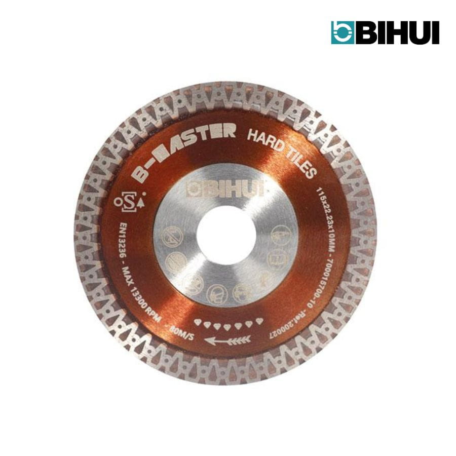 Tarcza diamentowa 115mm B-MASTER Bihui do cięcia twardych płytek i ceramiki. Gwarantuje precyzję, stabilność, długowieczność i wysoką wydajność cięcia.