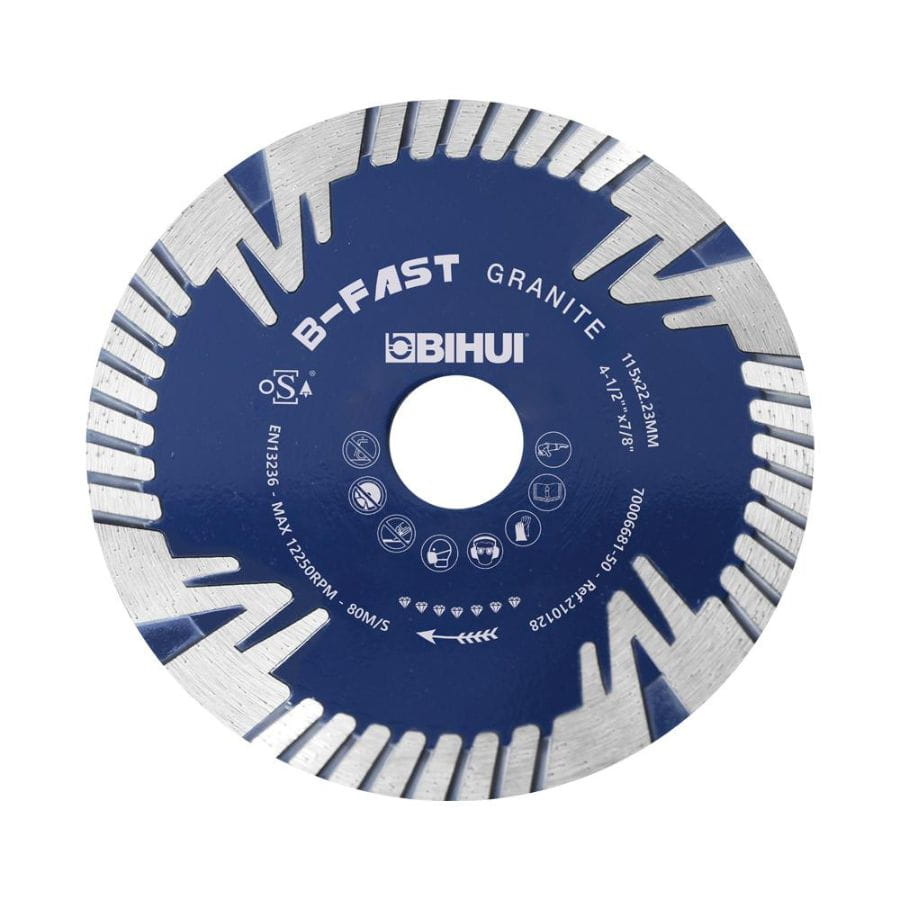 Tarcza diamentowa segmentowa Bihui DCDF230 B-FAST o średnicy 230 mm to niezawodne narzędzie do cięcia granitu, marmuru i twardego kamienia. Zapewnia wysoką precyzję oraz dużą trwałość dzięki 12 mm nasypowi. Przystosowana do pracy na sucho i mokro z otworem montażowym 22,23 mm i możliwością jego powiększenia.