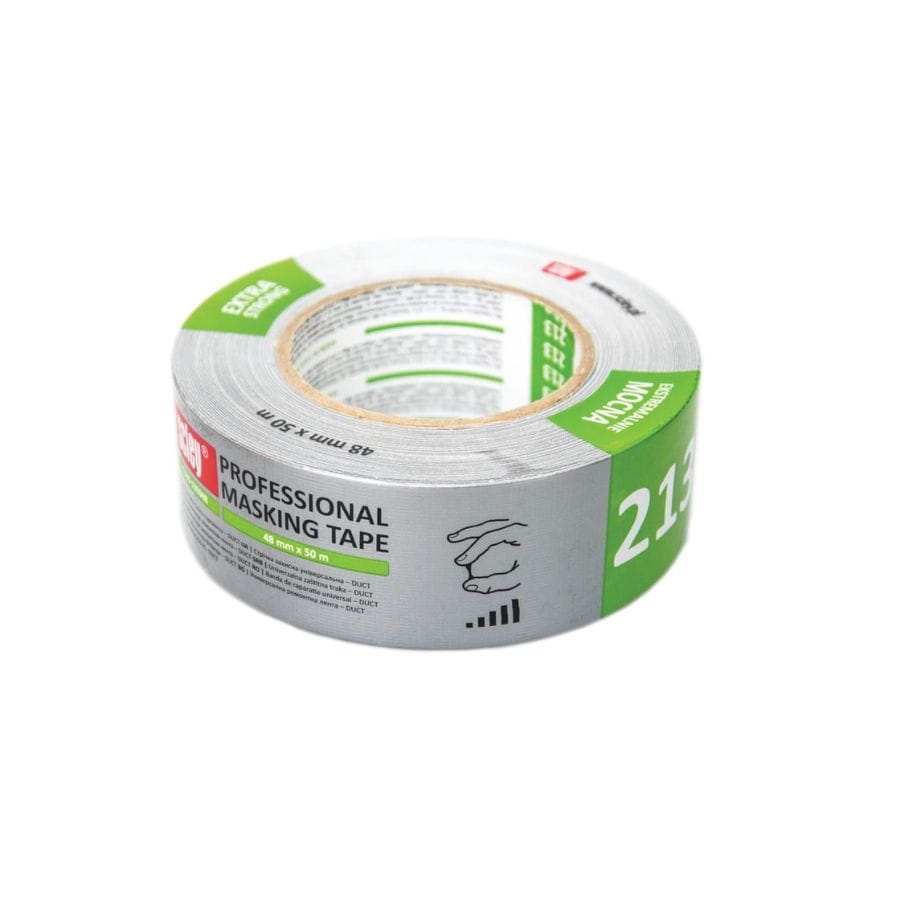 Taśma uniwersalna naprawcza srebrna 48x10m DUCT 213 Scley, pokryta polietylenem, bardzo mocny klej, odporna na wilgoć, do wszechstronnych zastosowań naprawczych i ochronnych.