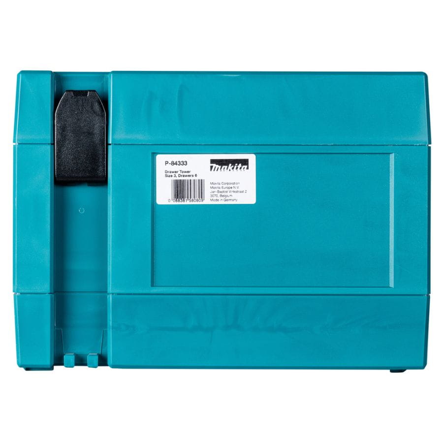 Walizka Makita P-84333 MakPac z 6 szufladami i przegrodami do organizacji narzędzi. Modułowa, trwała i wygodna w przenoszeniu, kompatybilna z systemem MAKPAC.
