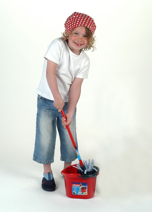 Wózek do sprzątania Vileda to realistyczna miniatura prawdziwego zestawu, idealna do zabawy w sprzątanie! Zawiera m.in. wiaderko z wyciskaczem, szczotkę i zmiotkę, pozwalając dzieciom naśladować rodziców.