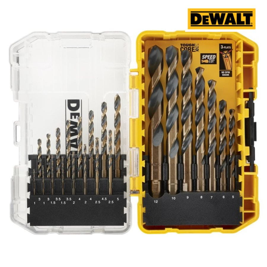Zestaw wierteł Dewalt DT70729 BLACK&GOLD 23 szt., Tough Case, system TSTAK, HSS, Speed Tip, No Spin Shank – trwałe, precyzyjne wiertła do metalu.