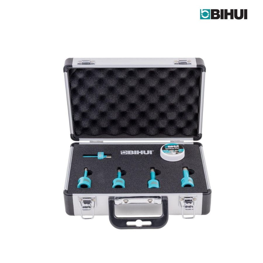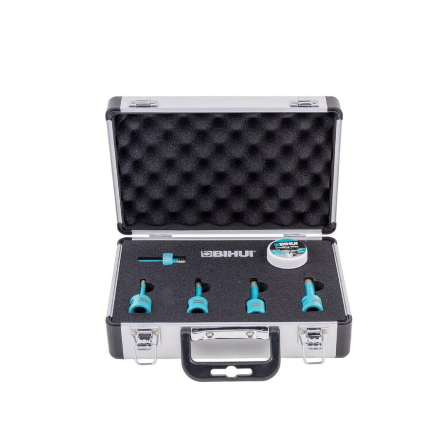 Zestaw koronek diamentowych Bihui DBDFC1 to profesjonalny komplet do precyzyjnego wiercenia w twardych materiałach, takich jak gres porcelanowy, marmur czy granit. Dzięki technologii VRS i lutowaniu próżniowemu, zapewnia wyjątkową trwałość, odporność na wysokie temperatury i wysoką prędkość pracy. Zestaw przeznaczony do montażu w szlifierkach kątowych (M14) lub wiertarkach z adapterem HEX.