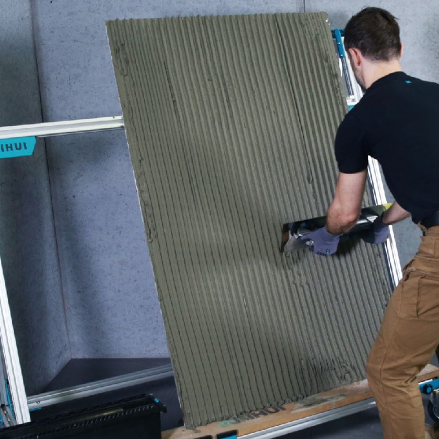 - Nakładanie kleju pod płytki ceramiczne, gresowe i kamienne.
