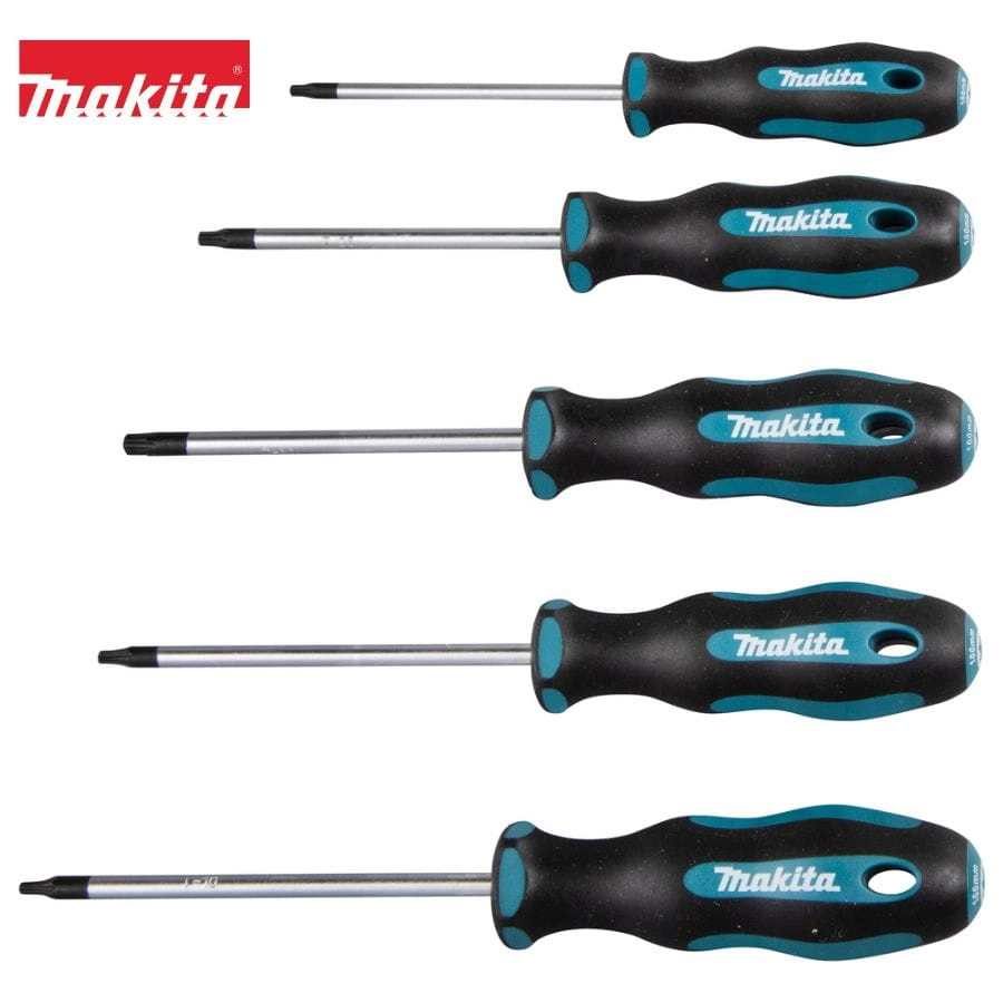 Zestaw wkrętaków Torx Makita E-10534 5 sztuk. Końcówki T10–T30 z magnesem, ergonomiczne uchwyty antypoślizgowe i olejoodporne. Precyzyjne i trwałe narzędzie do różnych zastosowań.