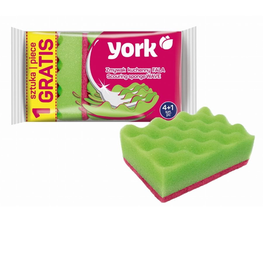 Zmywak Kuchenny Fala York 3022 – 5 sztuk, karbowana gąbka o falistej strukturze, usuwa uporczywy brud z naczyń o nietypowych kształtach i trudno dostępnych zakamarków.
