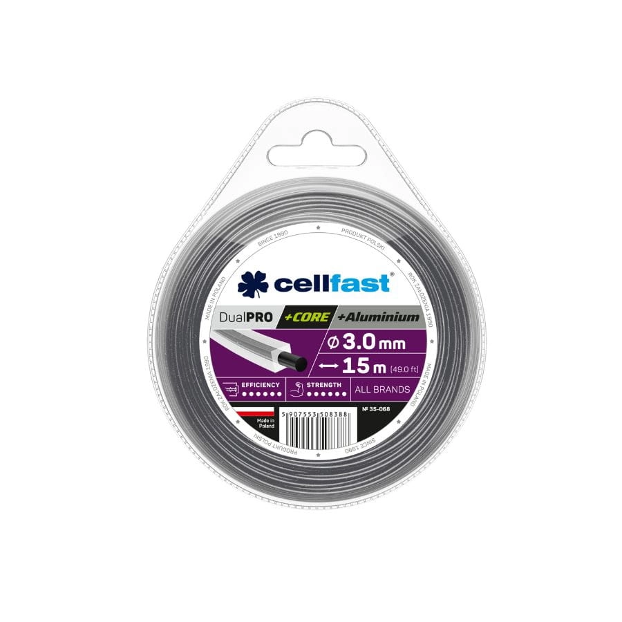 Żyłka tnąca 3mmx15m - kwadratowa z rdzeniem 35-068 - Wysokiej jakości żyłka tnąca z rdzeniem i cząsteczkami aluminium. Idealna do intensywnej pracy i wymagających warunków!